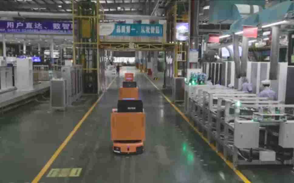 为车载冰箱物流配送打造的智能解决方案,,,,包含产中物流通过潜伏举升AMR搬运至线边,,,产后成品物流智能仓储,,,流程包含产中物流智能齐套入库,,线边安灯叫料AMR智能配送至线边,,,,成品入库、、、出库,,,,通过无人堆高车机器人,,,智能仓储管理替代人工作业管理,,,,实现更高存储、、、更高效率、、、、更具柔性化的解决方案。。。
